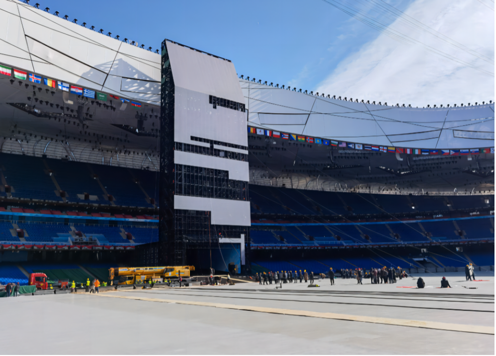 The 60-meter-tall icefall facility uses over 1,000 tons of steel and 6,000 components. As the core structural base for systems like the lift and LED display, it required extremely precise welding and assembly—achieving 100% weld penetration and a final installation tolerance of just 1.5mm.